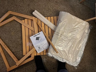 [This review was collected as part of a promotion.] This was super easy to put together! My only complaint is the Allen wrench is a little clumsy against the side of the base but I had a screwdriver with the same size bit and that made it easier. But overall assembly is very easy and straightforward. My dog seems a little unsure of the bed right now but I’m sure she will warm up to it. It’s super cute!! My dog is 50 pounds and would fit comfortably on this bed.