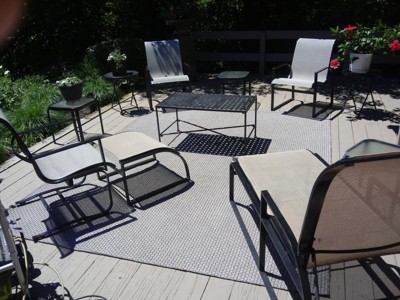 I love this coffee table although it was smaller than what I thought it would be. I have a very large deck that it was going on but it was a bit small for the space. I ended up purchasing a second one and just put them right next to each other to make a bigger statement. So far no rusting, I have only had them for a few weeks but they have been through several rain storms and no rust yet. Super easy to put together, took me about 10 minutes.