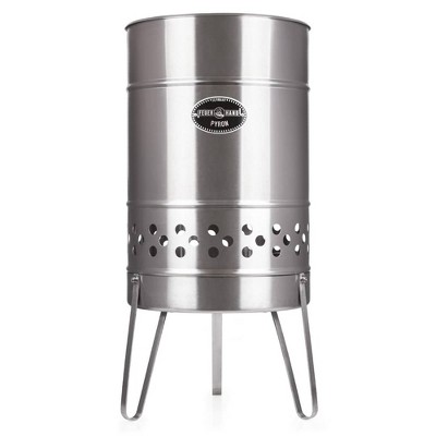 Low-Smoke Fire Pit for Cozy Campfires Bring the Tyropit Stainless Steel Fire Bowl to your patio or yard, and enjoy a crackling fire that's comfortable and cozy without all the smoke and soot! The double-wall, high-quality stainless steel protectively surrounds the wood fire and provides virtually smoke- and soot-free combustion thanks to specially positioned ventilation openings. So, you can celebrate long evenings full of light and warmth in a way that is kind to the environment and to your neighbors. Material: Stainless steel. Top diameter (outside edge): 22.76", Top diameter (inside edge): 19.92", Floor space: 24.53", Height with support legs: 13.98", Weight: 26.68 lb. Origin: China Exceptionally even heat distribution due to flat build and double-wall stainless steel body with ventilation openings all round. Sturdy, heat-resistant body and three solid support legs for a sheltered fire and tilt-proof stability integral heat shield to protect delicate ground underneath. Low levels of soot and smoke in operation due to direct combustion of smoke gases. Easy to remove ash cleanly thanks to separate charcoal grate and removable ash dish. Extremely durable and will develop a distinctive patina over time. Dimensions: 13.74" H x 22.44" OD. Includes: 1 x Cylindrical body (inner casing and outer casing, riveted), 1 x Charcoal grate, 1 x Ash dish with domed spark guard, 3 x Mounting bracket with screw threads, 1 x Heat shield, 3 x Support legs, 6 x Allen screws, 6 x Washers, 1 x Allen wrench for installing the support legs and 1 x User manual