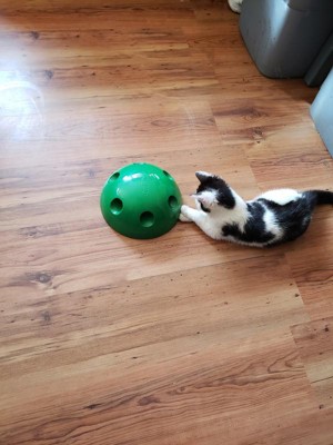 [This review was collected as part of a promotion.] I have tried many toys with my cat that have not worked like this one did. This keeps him busy and active. He is a hyper cat so this helps him a lot. I couldn’t be any happier to finally find something that works for him.