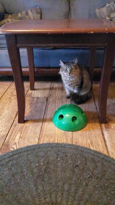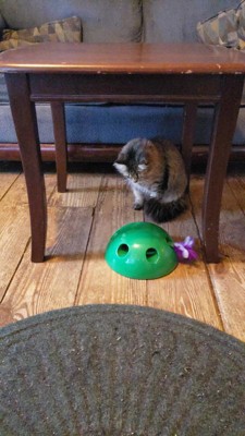 This would be a great toy if it wasn’t sO loud. As soon as I purchased the C batteries and powered up the toy, I knew it was a mistake. Both cats darted away from it due to the noise. It even scared my dog, who ran over to get between me and the screechy, mechanically squeezing contraption. I left it on for 3 minutes-in which time it cleared the room of furbabies and gave me a headache.