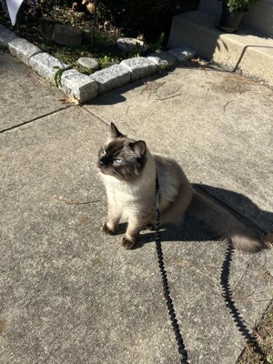 I use this harness for all my adventure cats and it’s great! It’s not restrictive like some other thicker harness and is more comfortable for new adventure cats. The simple design won’t add any unnecessary weight or heat. The bungee harness prevents them from pulling too hard and creates a secure boundary for them. I would recommend this harness for anyone interested in getting their cats outside! Just make sure to secure it properly and snugly so they don’t slip out and you might want to shorten or knot the harness in the length you want, the rubber stopper is a little too easy to undo and can loosen the harness as time goes on.