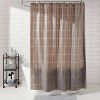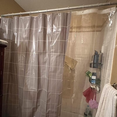 Bring minimalist style to your bathroom decor with this Shower Curtain with Rings from Room Essentials™. Crafted from 100% PEVA material, this decorative shower curtain features a buttonhole top for easy installation. Featuring a white grid pattern on a brown background, it brings simple style to your bathroom decor. Best of all, it comes with 12 plastic shower rings for immediate installation. Coordinate it with the bath accessories of your choice to give your bathroom a stunning makeover.