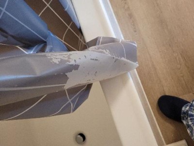 It always sticks to my tub and leaves residue. It’s difficult to get off too. I’ve gotten other Target shower curtains and didn’t have this problem.