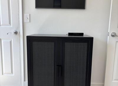 PexFix 36"x31"x16" Rattan Wood Accent Cabinet with Adjustable Shelf Storage Cabinet Black