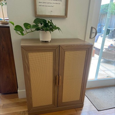 PexFix 36"x31"x16" Rattan Wood Accent Cabinet with Adjustable Shelf Storage Cabinet Natural