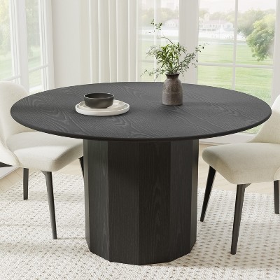 PexFix 52" Solid Wood Round Dining Table Kitchen Table for 4-6 with Tabletop & Concave Cylinder Legs for Living/Dining Room Coffee Office Black