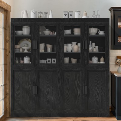 PexFix 62" W x 31" H Modern Sideboard Cabinet with 4-Doors Rattan Panels Buffet Console Accent Storage Cabinet for Hallway Entryway Dining Room Black