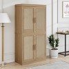 - Premium Quality Materials:Our freestanding storage cabinet is made of high quality solid wood that can withstand daily wear and tear. The hand-woven rattan wood doors give the whole cabinet a textured look that can easily fit into your various matching styles.