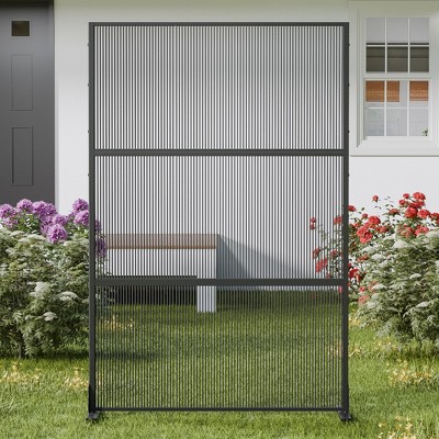 PexFix 72 in. H x 47 in. W Outdoor Metal Rattan Crossover Black Screen Garden Fence Brick Pattern Wall