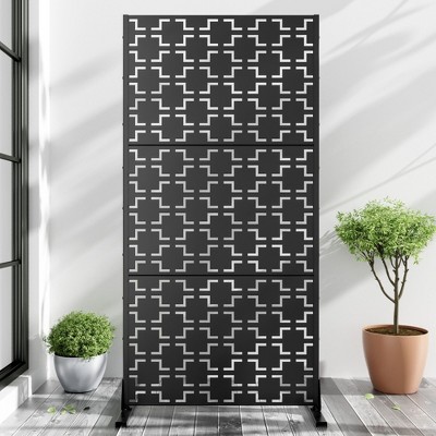 PexFix 72 in. x 47 in. Black Metal Freestanding Privacy Screen Garden Fence For Deck Patio Balcony Outdoor Privacy Panel Square Design