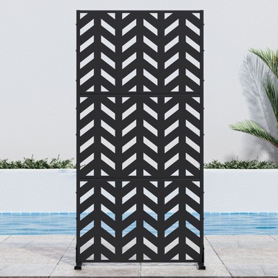Metal Screen Divider: This tall and stylish outdoor privacy screen set with a durable stand is crafted from fully seam-welded, thick gauge powder-coated galvanized steel. The furniture-quality finish makes it resistant to scratches.