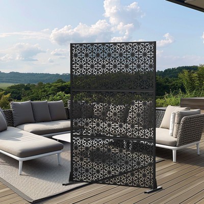 Pexfix 72 x 47 Inch Metal Privacy Screen Freestanding Outdoor Divider Panel For Patio Deck Balcony Heavy Duty Base Weatherproof Black Twill V-Shape