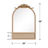 Product Name: PexFix 24 in. W x 36 in. H Classic Carved Arch Wood Frame with Rattan Bottom Wall Mirror in Brown