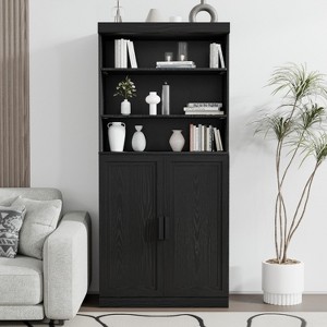 - Ample Storage Space & Adjustable Shelves: This tall bookcase offers 6 spacious tiers with adjustable shelves, The upper half of the bookshelf with doors is open to three display shelves for books and plants, the lower half of the double-door storage cabinet hides the daily sundries, dual-mode storage to solve the problem of family clutter. The middle shelf of the bookcase can be freely adjusted in height, providing more possibilities for your flexible storage.