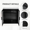 The storage cabinet in question is a versatile piece of furniture designed to meet various organizational needs within a home. It can function as a pantry cabinet, providing ample space for kitchen essentials and groceries, ensuring they are neatly stored and easily accessible when needed. Additionally, it serves as a sideboard cabinet, offering extra surface area for decorative items or serving dishes, enhancing the aesthetic appeal of dining spaces. Furthermore, its adaptability extends to acting as an entryway cabinet, where keys, mail, and personal belongings can be conveniently stowed away, maintaining order and tidiness at the entrance of a home.