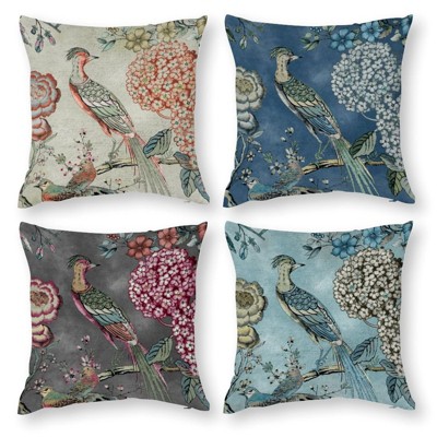 Pheasant Floral Aqua Blue Coral Throw Pillow Covers Chinoiserie Bird Floral Pillow Covers Modern Bed Throw Pillow Cushion Cover Bedroom Decor for She Shed Cabin Housewarming Gifts 18x18 Outdoor Waterproof Cotton Linen