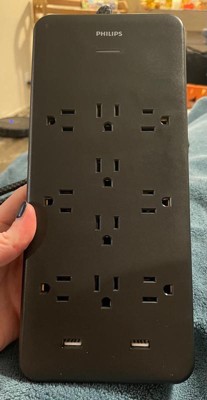 Philips 10-Outlet Surge 6' Braided cord 2880J 2 USB-A - 2.4A Adapter-Spaced - Black