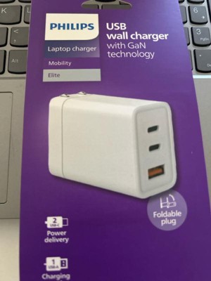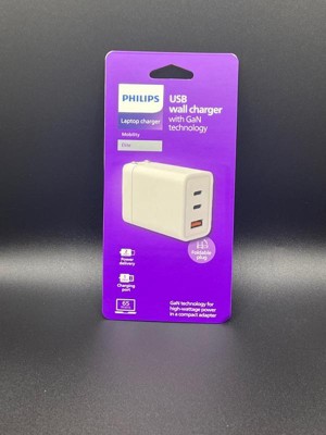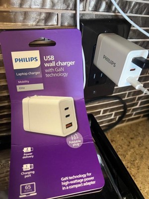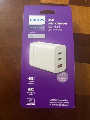 Philips 3 Port Fast Charging Wall Charger with USB-A and USB-C: 65W Power Adapter