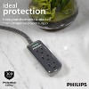 Your power does more with the Philips 3-Outlet Grounded Extension Cord with Surge Protection. Converting one outlet into three, this powerful extension cord adds more three-prong outlets where you need them most and keeps your electronics protected from dangerous power surges. Power household appliances, lamps and seasonal lighting, tools, laptops, tablets and mobile devices all from one central hub. It features a surge protection rating of 300 Joules to ensure your electronics are safeguarded from voltage spikes. The built-in protected indicator light lets you know that your connected electronics are properly protected. The surge protectors extra-long 8ft. braided fabric power cord is connected to a flat plug, allowing it to plug in easily behind desks, sofas and other furniture. Featuring a black pattern, the decorative, woven fabric increases the cable’s durability, is tangle-resistant and adds instant style to any space. Your outlet deserves an upgrade with the Philips 3-Outlet Grounded Extension Cord with Surge Protection.