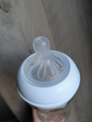 We have moved to a pace-based flow navigation system. The Natural Response nipples come in flow rates 1-5, to keep up with your baby's development. Start with the nipple that comes with the bottle. Try a lower flow if milk is leaking from baby’s mouth or baby is gulping. Try a higher flow if baby is playing with the nipple instead of drinking or seems frustrated. It is totally natural for your baby to take 2-3 tries to get milk flowing from a new feeding bottle.