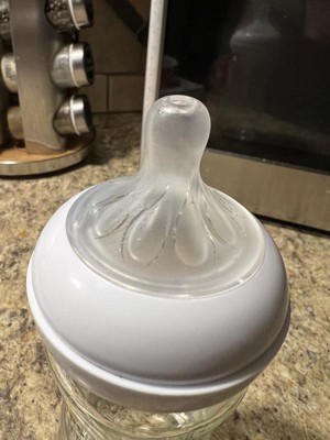 We have moved to a pace-based flow navigation system. The Natural Response nipples come in flow rates 1-5, to keep up with your baby's development. Start with the nipple that comes with the bottle. Try a lower flow if milk is leaking from baby’s mouth or baby is gulping. Try a higher flow if baby is playing with the nipple instead of drinking or seems frustrated. It is totally natural for your baby to take 2-3 tries to get milk flowing from a new feeding bottle.