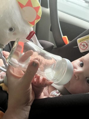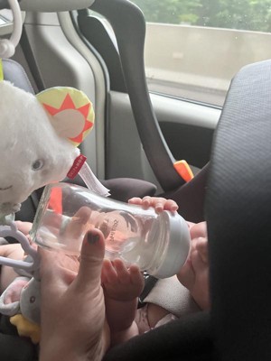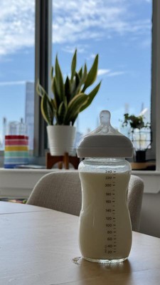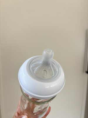 Easily combine breast and bottle feeding with a wide breast-shaped nipple that mimics the soft feel of a breast. The nipple has a no-drip design which helps prevent lost milk from the tip. An anti-colic valve integrated into the nipple is designed to reduce colic and discomfort by sending air away from your baby's tummy.