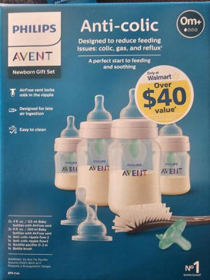 [This review was collected as part of a promotion.] I was lucky enough to receive this product through the Stellar Product Testing Panel. The set itself is 100% complete for the newborn stage! It comes with different size nipples from 0 months all the way up to 3 months as it is the newborn gift set. My son had no problem switching to this bottle from another brand that we were using and even seems to like it better! I love that is has the air free vent and you can use it with or without. Im definitely continuing to use them though as it really has helped with his gas and fussiness during feeds. It even came with the same Phillips Avent binky that the hospital provided to both of my babies when they were born and the most recent, my son usually doesn't like another brand of binkys so that was an awesome plus. The quality is truly unmatched and like i said its actually the brand our local hospitals use so that really speaks volumes!
