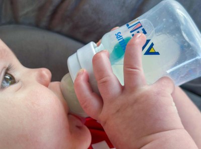 The anti-colic valve integrated into the nipple is designed to keep air away from your baby's tummy to reduce colic and discomfort. As your baby feeds, the valve flexes to allow air into the bottle to prevent vacuum buildup and vents it towards the back of the bottle. The nipple shape allows for a secure latch and the ribbed design helps prevent collapse for uninterrupted, comfortable feeding.