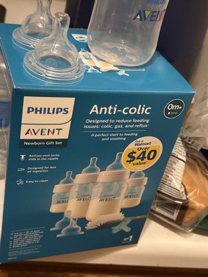 [This review was collected as part of a promotion.] I recieved the Philips Avent Anti-Colic Nipples 4-pack from the Stellar Product Testing Panel and I'm glad I did! The bottle pack is a great starter kit to our bottle transition journey. I previously used the comotomo bottles with my other kids and had plans to continue that with my newest baby. I've been exclusively breastfeeding and then introduced the Philips Avent Anti-Colic bottle to transition for when I go back to work. I did however had to change the nipple out to a faster flow (1m+). I think the faster flow worked better because I do I have a fast let down when nursing. Pros: - Comes with a bottle brush and a pacifier. The bottles were easy to clean and the pacifier is a nice bonus, as its the same ones they give at the hospital. - Nipples with different flows. 1m+ nipple flow worked best for my newborn. - Baby wasn't as gassy compared to using the Comotomo bottles. Cons: - I knocked off a star for the feeding being a little messy. I think it's more so my baby not latching well so milk dribbles out of her mouth. Overall, the bottles are a great and easy to use/clean. I definitely like how it helps reduce gas and less spit ups! Highly recommend!