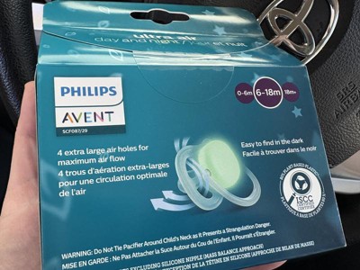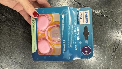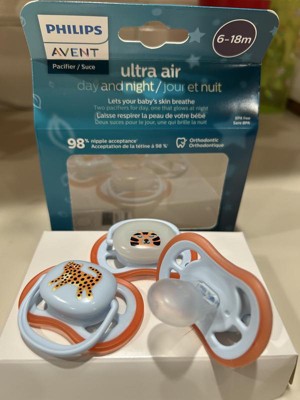 3 Philips Avent Ultra Air Pacifiers for babies ages 6-18 months : 2x Day Time Pacifiers, 1x Glow-In-The-Dark Pacifier