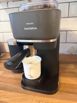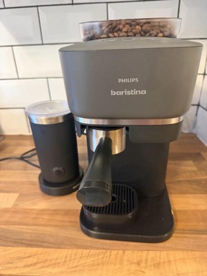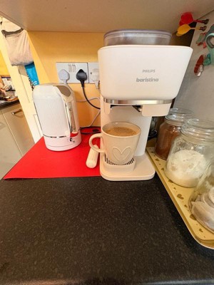 [This review was collected as part of a promotion.] I recently started using this Phillips Baristina espresso machine and it has completely transformed how I make my coffee at home. what stands out straight away is how simple and quick it is to use. I just add my favourite coffee beans, fill the water tank, swipe the handle and the machine does everything from grinding to tamping to brewing. It takes less than a minute to make a fresh espresso which makes mornings feel much easier and more enjoyable. The coffee quality is genuinely impressive. The 16bar pressure helps extract a rich full flavour from the beans and create smooth espresso with a nice crema on top. Because it uses freshly ground beans every time the aroma and taste feel much closer to a coffee shop drink compared to pod machines. I also like that I can choose between espresso and longo and even boost the intensity for a stronger cup depending on my mood. The design is another big highlight. It is compact and does not take up much space on the kitchen counter but still feels modern and well made. The bean container holds a good amount and the water tank is large enough for several drinks which means I do not have to refill it constantly. It is also relatively quiet compared to other coffee machines which I have tried before which makes it nicer to use early in the morning. Cleaning and maintenance are surprisingly simple. The portafilter design means I can easily move the used coffee grounds and rinse the parts without dealing with messy internal components. Some parts are dishwasher safe, which makes things even more convenient. I also like that it does not use pods so there is less waste and means it is more environmentally friendly. One small down side is that there is a limited control over things like grinding size which means you cannot fine tune the coffee as much as some more advanced machines. It also does not include a built in milk system. If you enjoy lattes or cappuccinos, you would need a separate milk frother. But this is easily solved by purchasing a separate milk frother if needed. Overall, this machine is a great balance of convenience, quality and simplicity. It delivers fresh flavorful coffee quickly and makes the whole process feel easy and enjoyable. If you want a straightforward way to make barista style coffee at home without too much effort than this is a great option.