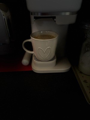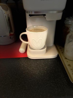 [This review was collected as part of a promotion.] Absolutely love this coffee machine, it’s white so it matches my kitchen perfectly and it looks so cute and stylish too! It’s so so easy to use aswell, the coffee beans go in the tip, it even comes with a milk frother so you can have a frothy coffee , it’s easy to assemble and easy to clean and not very noisy either , plug it in and away you go!!