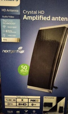 - Designed for use with all brands of TVs and converter boxes, this Philips indoor TV antenna with a built-in amplifier provides enhanced, crystal-clear reception of HDTV, VHF and UHF channels up to 50 miles from the broadcast source