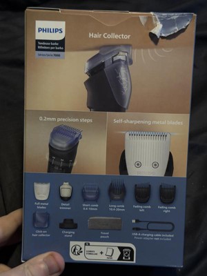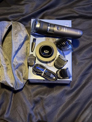 [This review was collected as part of a promotion.] This handsome trimmer comes with a bag full of accessories and a charging stand. There is no wall plug included, so if you want to keep it in the bathroom, you need to buy Phillips' USB adaptor. Although the charging stand uses USBC, the shaver does not, so if travelling, you must take the stand with you. First impressions are good, with the shaver being good to look at and fitting well in the hand. Although the materials used are all solid, and should last well, the top part is not rubberised, so grip can suffer a little because of this. The combs are also pretty plasticky, and the one I use for my beard extends over the outside edges of the trimmer blades, so it's not as accurate as I would like. The controls are simple, with one button to turn on and off, and a wheel to select the length. Both work well. The performance of the motor is less good, being a big step down from the power of the Philips 9000 series. I find compared to that shaver, I have to go over areas almost twice as much to ensure all the hairs are cut. At the time of review, that shaver is only 10% more expensive than this one. One feature I was looking forward to was the hair catcher, and in many ways it does work well. Initially I was a little upset that to remove it, you need to first remove the length comb, but I quickly realised that since the whole shaver is waterproof, you can rinse it out easily. It most definitely makes less mess than other shavers, though some cleanup is still needed. Overall, this is a capable shaver with some decent features. My only major complaint is the motor's performance, and given that the 9000 series is only 10% more expensive, it is a tough call as to which I would recommend.