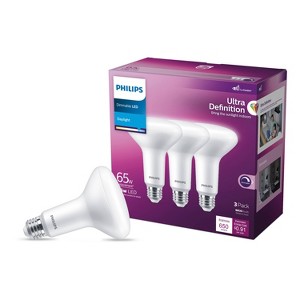 Philips UltraDef LED 65W Daylight BR30 3P: Dimmable Energy Star Certified Light Bulbs, 5000K, 650 Lumens, 3 Pack