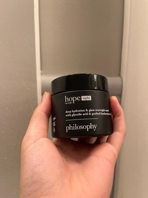 [This review was collected as part of a promotion.] The philosophy Hope in a jar, dehydration, and glow overnight mask is perfect for nighttime moisturization. I use it after applying my toner and serums and the smell is very refreshing. I noticed my skin feeling more plump and glowy.