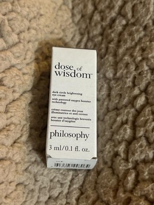 I have tried a few over-the-counter eye creams to reduce the appearance of dark circles. I use other Philosophy products and decided to try their Dose of Wisdom Eye Cream. After using the product for a few weeks, I see results, and the dark circles are less noticeable.
