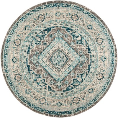 At the heart of its design, the rug showcases a traditional style that pays homage to time-honored patterns, integrating them beautifully with modern color trends to create a piece that is both classic and contemporary. The vibrant central motif and intricate border details on this round area rug are a feast for the eyes, promising to be a focal point in your living space, dining area, or bedroom.