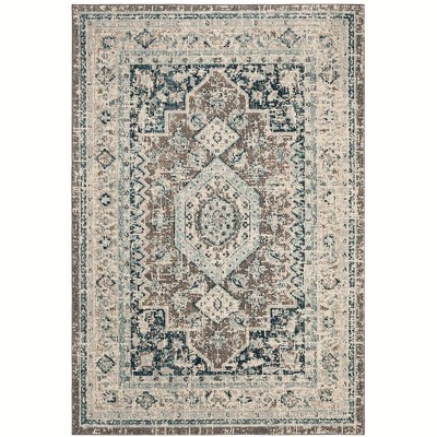 The intricate pattern details of this rug feature a harmonious blend of ivory and blue hues, framed by an elegant border that incorporates subtle accent shades to complement a variety of decor schemes. The traditional design elements are a nod to classic aesthetics, while the modern color palette provides a contemporary twist that will enhance any room.