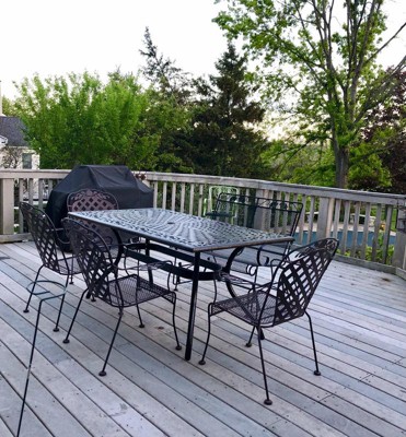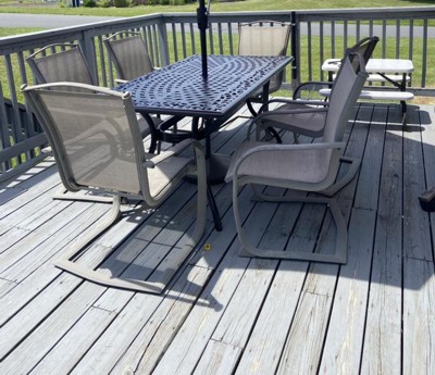 We chose this table because our glass table shattered in a storm! The price was right and delivery was fast. I like it so much more in person than I did in the pictures. It looks amazing on our deck! We assembled it in about 20 minutes. Everything was packed well and easy to figure out once the box was opened. The table is nice and heavy—no more worrying about the wind! It’s a couple of inches narrower than our glass table was, which is nice because it fits the deck much better. It’s not as shiny in person, which I was concerned about. The color is great. Overall, very pleased!