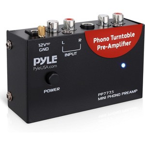 The Pyle PP777.5 Phono Turntable Pre-Amplifier is the ideal solution for converting phono signals into line-level audio, ensuring optimal sound quality. This mini electronic preamp features RCA input and RCA/1/4” jack outputs, making it compatible with a variety of turntables and studio equipment. The ultra-low noise operation ensures you get the clearest, most accurate sound from your vinyl records. Powered by a 12V DC adapter, this preamp is both reliable and compact, fitting perfectly into any home or professional audio setup. Enjoy rich, distortion-free audio with this efficient and easy-to-use turntable pre-amplifier.