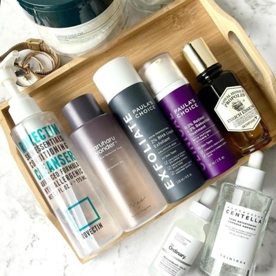 a skincare routine my skin LOVES. SO MUCH. btw i got this wooden tray for free from Exclusivester on Facebook and they're offering more free stuff to product testers in US, so join up!
