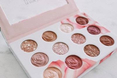The packaging and rose shape of the shadows are so pretty! The palette is smaller than I expected. The matte shades are decent but the shimmer shades really lack pigment. The shadows do have a light fragrance.