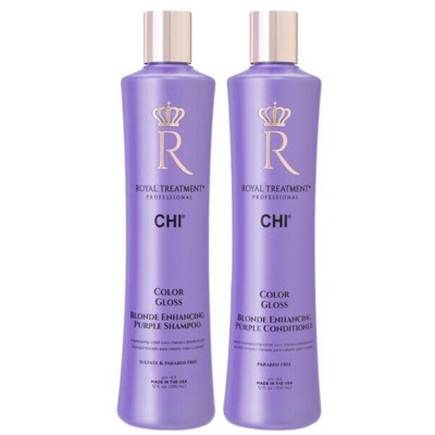 - The duo works together to tone down brassiness and enhance the natural or dyed brightness of blonde hair. The purple-tinted shampoo and conditioner act as toners that help cool down yellow hues. With regular use, your hair retains a radiant, luminous finish between salon treatments.