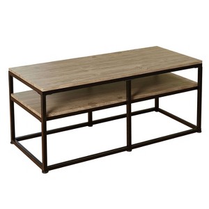 - Natural-reclaimed looking wood surface finish with a Black metal frame construction