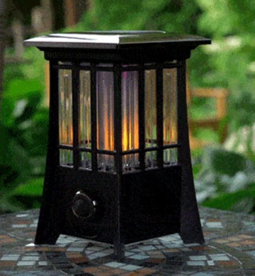[This review was collected as part of a promotion.] I really like this product. It looks pretty on the porch and I love the flickering flame. It was easy to set up. You can plug it in or put it in the sun to fuel it up. I can’t speak to the mosquito repellent portion of it because it’s January and there are no mosquitos right now!