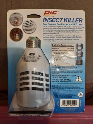 The PIC Insect Killer is a dual-purpose bug zapper and LED light compatible with most standard sockets. The zapper utilizes UV light to draw in flying insects. The electric grid kills bugs on contact, and the bright LED light is suitable for illuminating surrounding areas. The bug zapper/UV works with or without the LED by operating the light switch to your fixture._