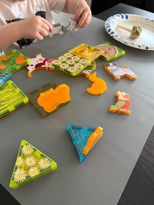 [This review was collected as part of a promotion.] This is a great toy for preschoolers- gives the creative opportunities from Picasso tiles but prompts them with the different themes and animals. We received the fall farm themed set, and my son loves playing with it since we opened it a few hours ago!