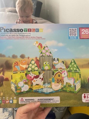 Product Name: PICASSO-TILES Magnetic Tiles for Kids – Farm Animals Theme 26PCS STEM Construction Building Blocks Educational Toy